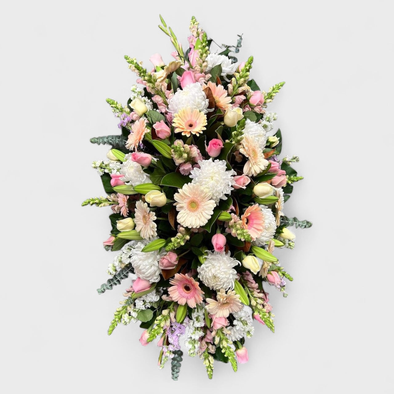 Our Funeral Tributes collection offers elegant funeral flowers to honour loved ones with grace and compassion. From handcrafted wreaths and casket sprays to sympathy bouquets and floral arrangements, each design is thoughtfully created to bring comfort and express heartfelt remembrance. Whether you need a tribute for a service, home, or casket, Tomuri & Co. provides same-day delivery across Auckland to help you share your aroha in life’s most tender moments.
