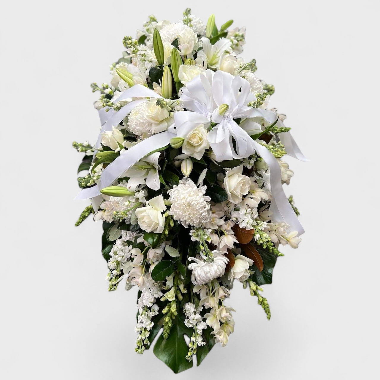 Our Funeral Tributes collection offers elegant funeral flowers to honour loved ones with grace and compassion. From handcrafted wreaths and casket sprays to sympathy bouquets and floral arrangements, each design is thoughtfully created to bring comfort and express heartfelt remembrance. Whether you need a tribute for a service, home, or casket, Tomuri & Co. provides same-day delivery across Auckland to help you share your aroha in life’s most tender moments.